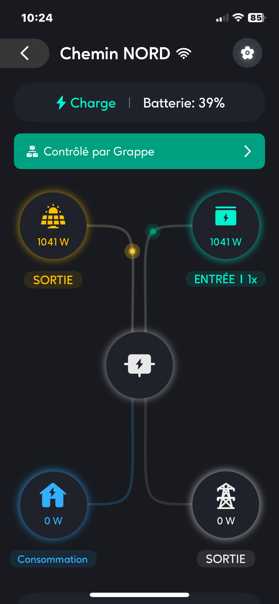 Le problème est que ça charge les batteries et prends de l’énergie supplémentaire sur le réseau EDF, mais je n’ai aucune sortie de mon photovoltaïque sur mon réseau