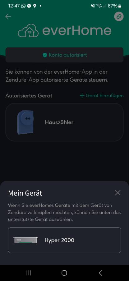 Hallo, ich habe den ecotracker über everhome in Zendure App hinzugefügt und bekomme auch live Daten Der Leistung. Leider ist es mir nicht möglich, den Ecotracker mit dem Hyper2000 zu verknüpfen. Wenn ich unter der everhome Option auf "mit solarflow verknüpfen" drücke, wird der hyper2000 anzeigt aber er lässt sich nicht auswählen/anwählen. Ich vermute ein Problem mit der Schaltfläche in der App. Kann jemand helfen? Danke BG Dennis