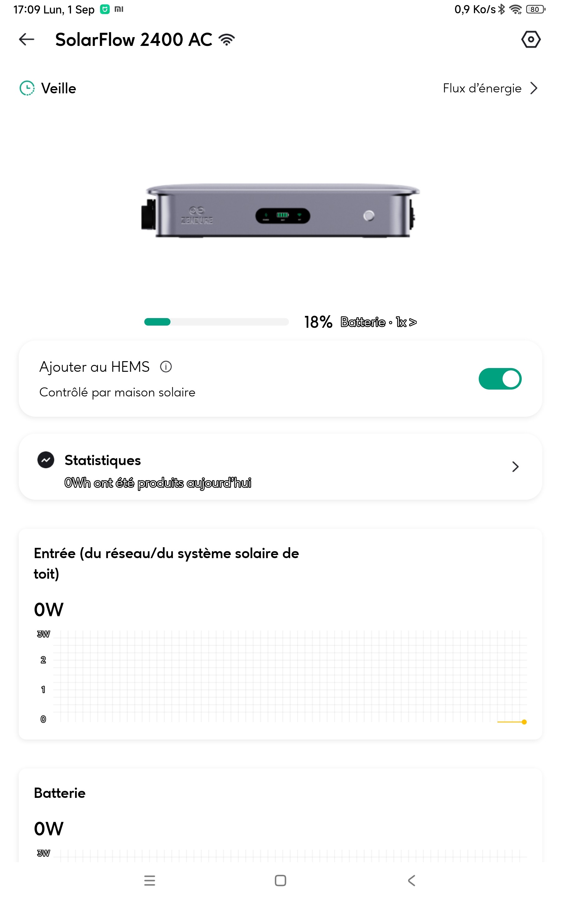 Autre point, je remarque que depuis 2 jours , la batterie zendure ne se charge pas ?