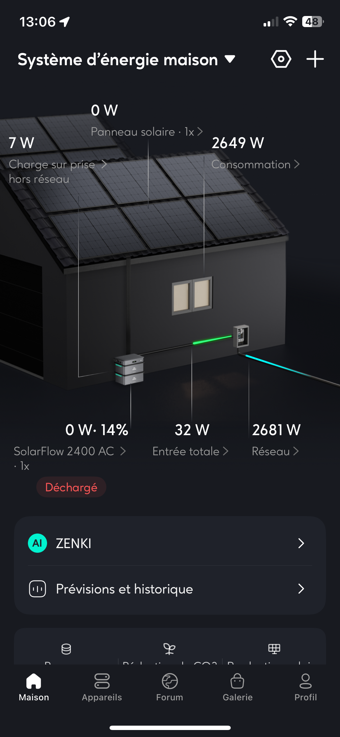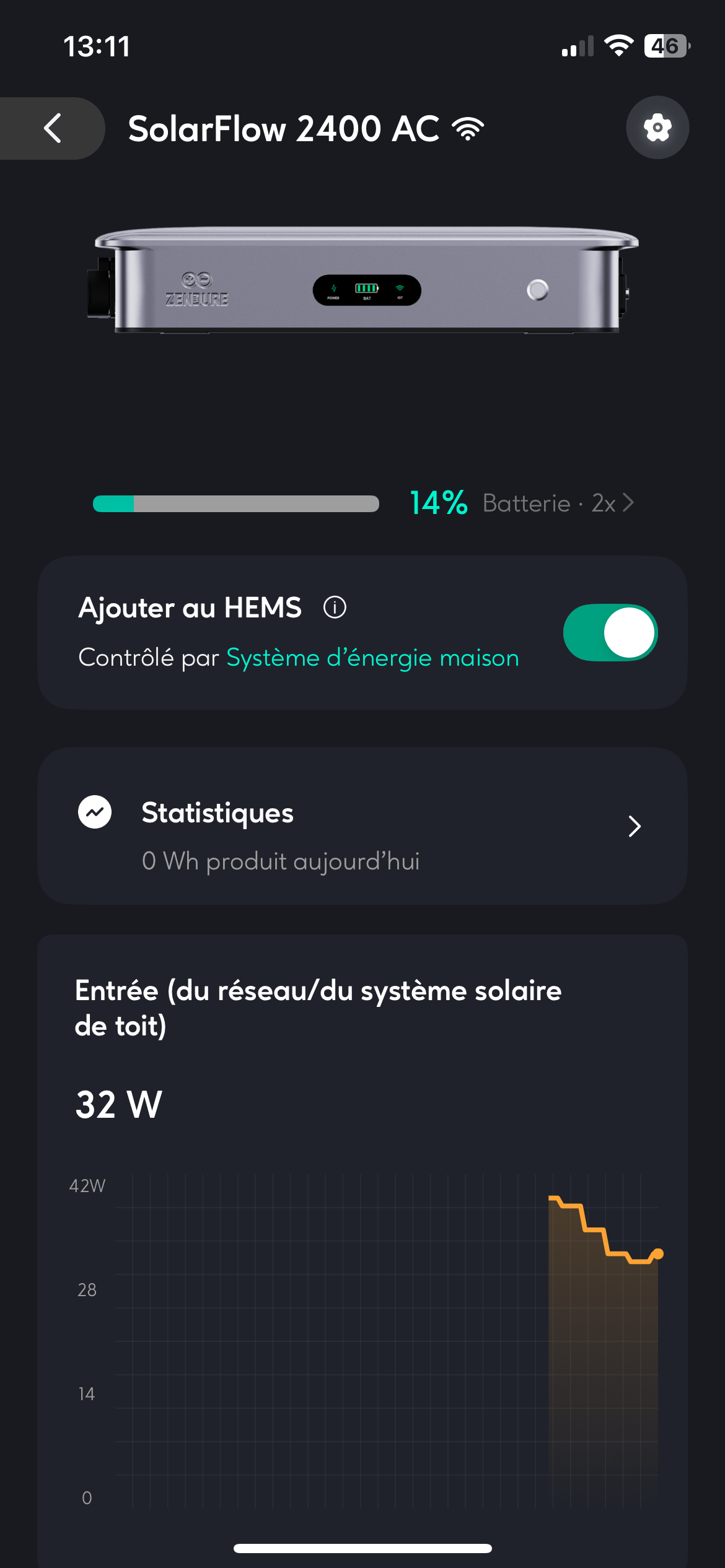 Je n’ai donc pas de visuel sur la production solaire via l’application zendure.