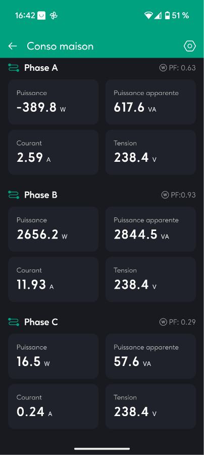 Shelly Pro 3EM (Phase B) → 2,65 kW (production mesurée)
