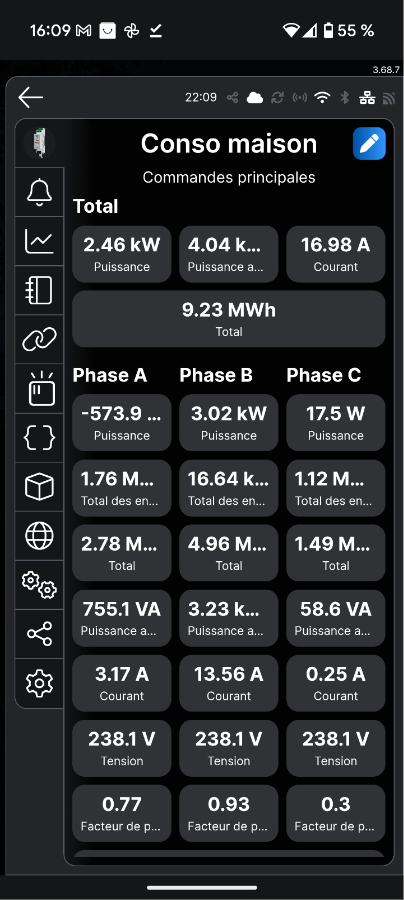 Mesure de la consommation et de la production via Shelly Pro 3EM