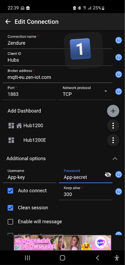 •dort eine Connection zu Zendure und Daschboard angelegt