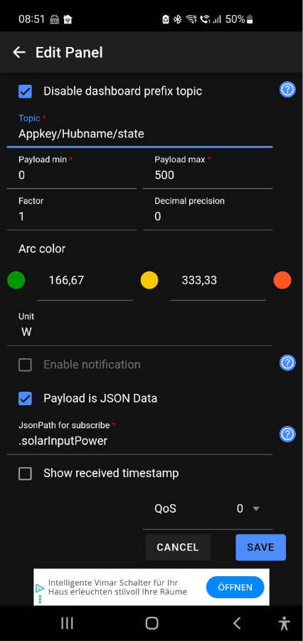 Habe mich auch mal mit MQTT beschäftigt und eine App entdeckt die zwar nicht mit so schönen Dashboards ,wie hier oft gezeigt, aufwarten kann aber um mal die min/max Zellspannungen usw. zu sehen reicht es allemal.