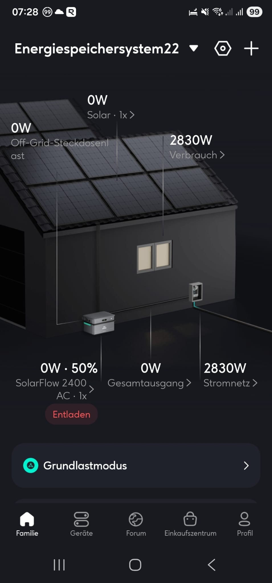 Heute früh stand plötzlich entladen und der Akkustand ist vom 56 auf 50% gesunken. Richtung Haus hat aber der smartmeter nichts mitbekommen.