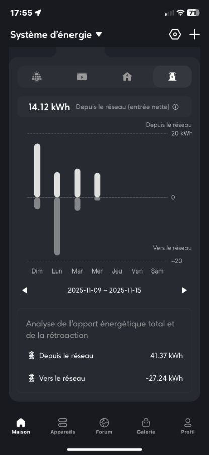 ZenUser212e31dh Au secours les batteries se décharge sur le réseau j’ai ma consommation en double !! Et 2,5 kw en moyenne de fuite sur le réseau et vide les batteries charge en heures pleine !!