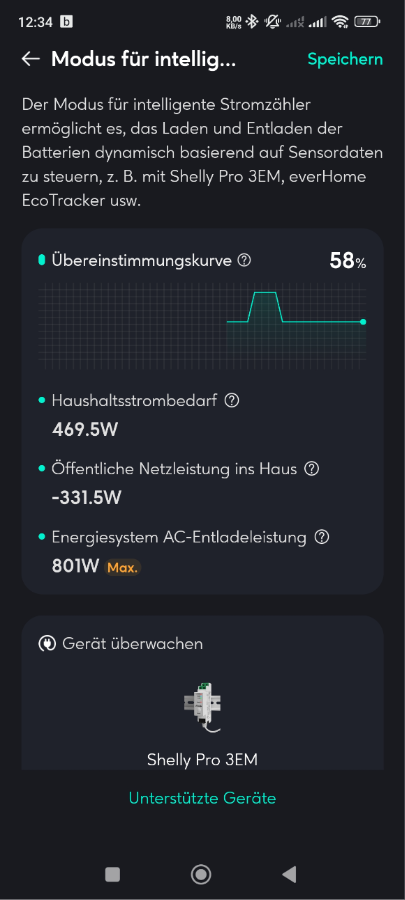 Allerdings sieht der 800 pro oder das HEMS? anscheinend immer noch mal "Phantomstrom" der Shelly sagt da werden 450w gebraucht und er sieht 1658w Verbrauch.