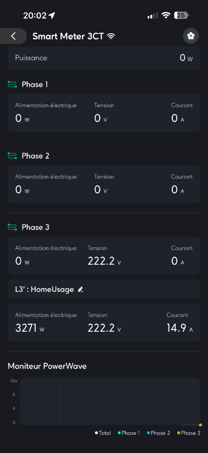 J’ai branché tout mon système et j’ai fait toutes les mises à jour cependant malgré une consommation électrique dans le foyer le compteur 3WCT mets automatiquement mes modules en veille et plus rien ne sort. Voir photos ci dessous. Merci d’avance pour votre aide.