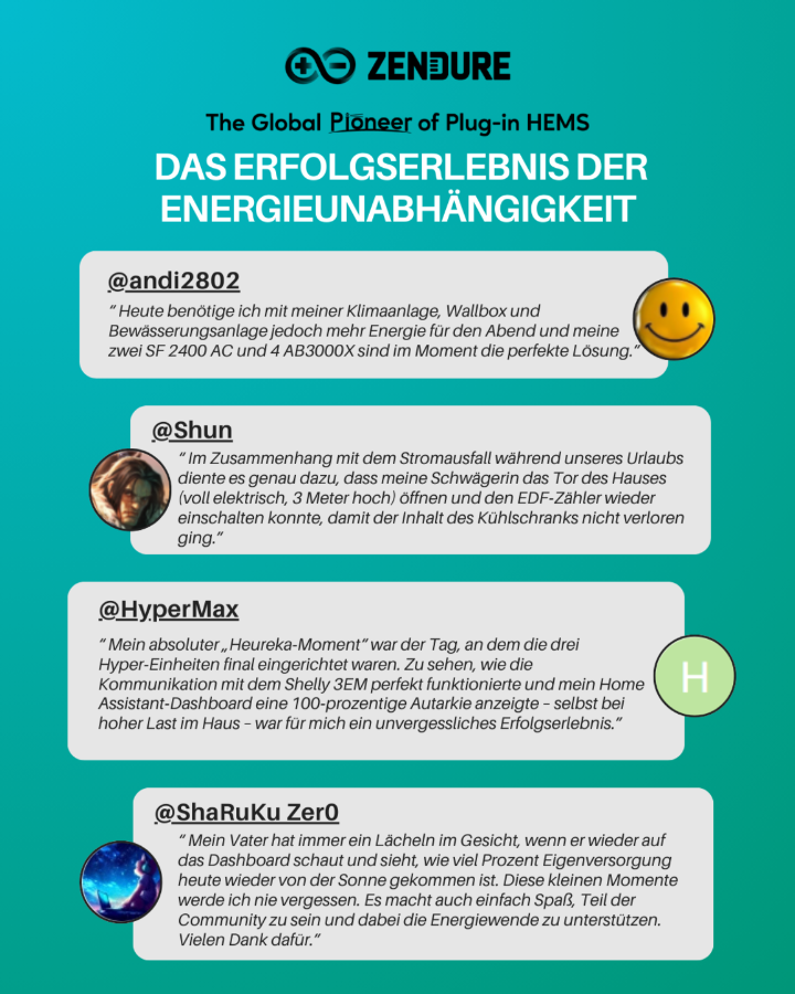 Ihre Sorgfalt, Professionalität und Ihr Streben naar Unabhängigkeit sind das wertvollste Gut des Zendure-Forums.